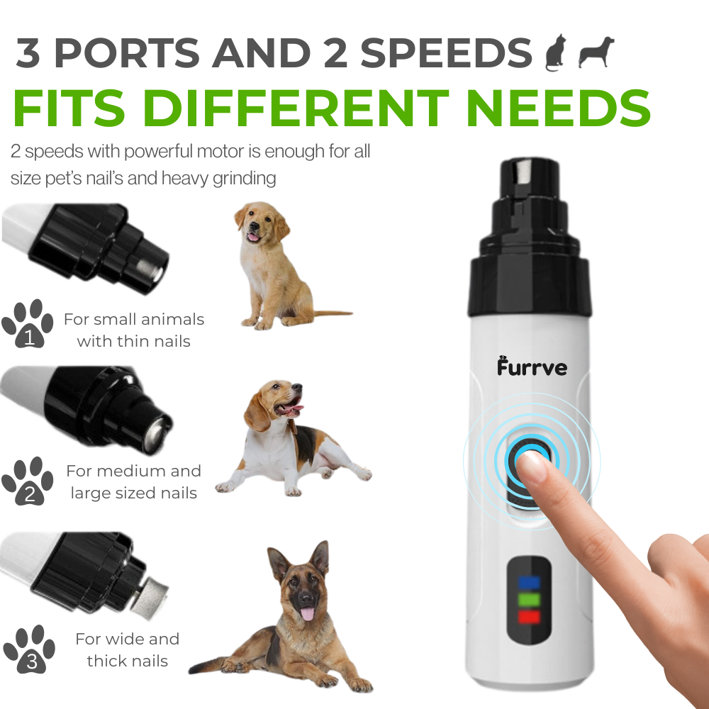We recommend starting on the low speed to see how your pet reacts. If needed, switch to the higher speed for faster, more effective grinding.